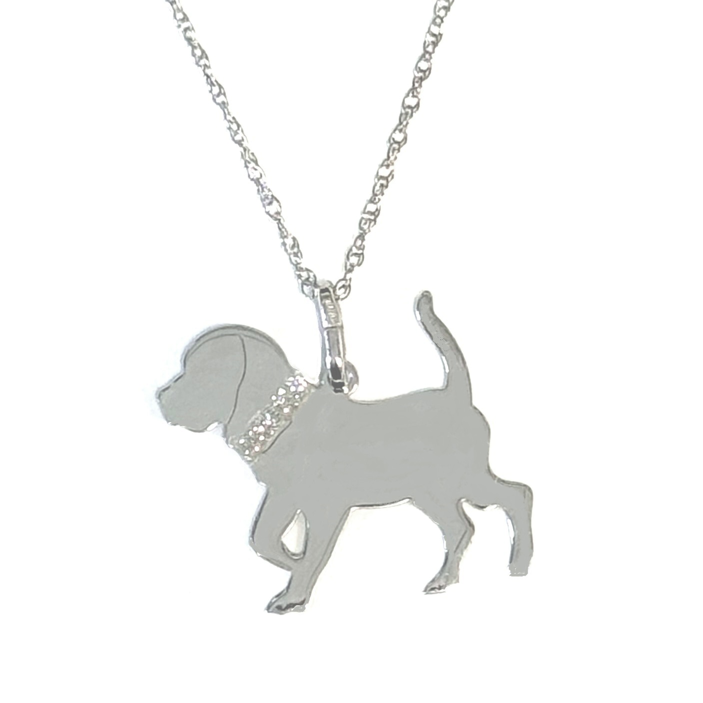 Adorable Sterling Silver Rhodium Plated Glitter Collar Beagle New Dog Pendant. Wear and show off your precious pup with pride. Put a little sparkle in your life with this quality piece.